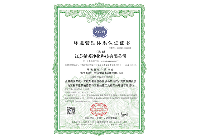 江蘇姑蘇凈化科技有限公司,具有國家電子與智能化工程壹級資質,國家機電安裝工程壹級資質,國家建筑裝修裝飾工程壹級資質 姑蘇凈化科技有限公司,具有國家機電工程施工總承包貳級、國家空氣凈化工程二級資質,國家電子與智能化工程二級資質,國家機電安裝工程二級資質,國家建筑裝修裝飾工程二級資質,消防設施工程專業二級資質企業。