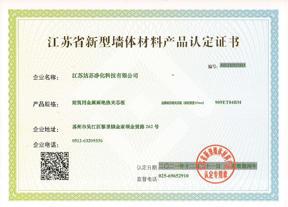 江蘇省新型墻體材料產(chǎn)品認(rèn)定證書