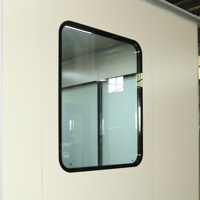 3、觀察窗采用雙層中空鋼化玻璃設(shè)計(jì)(常規(guī)尺寸為400*600mm),四側(cè)縫隙硅膠處理、縫障嚴(yán)密,內(nèi)四角為圓弧(也可為方形)處理,外形美觀大方。觀察窗里可放干燥劑、或充氨氣干燥處理,防